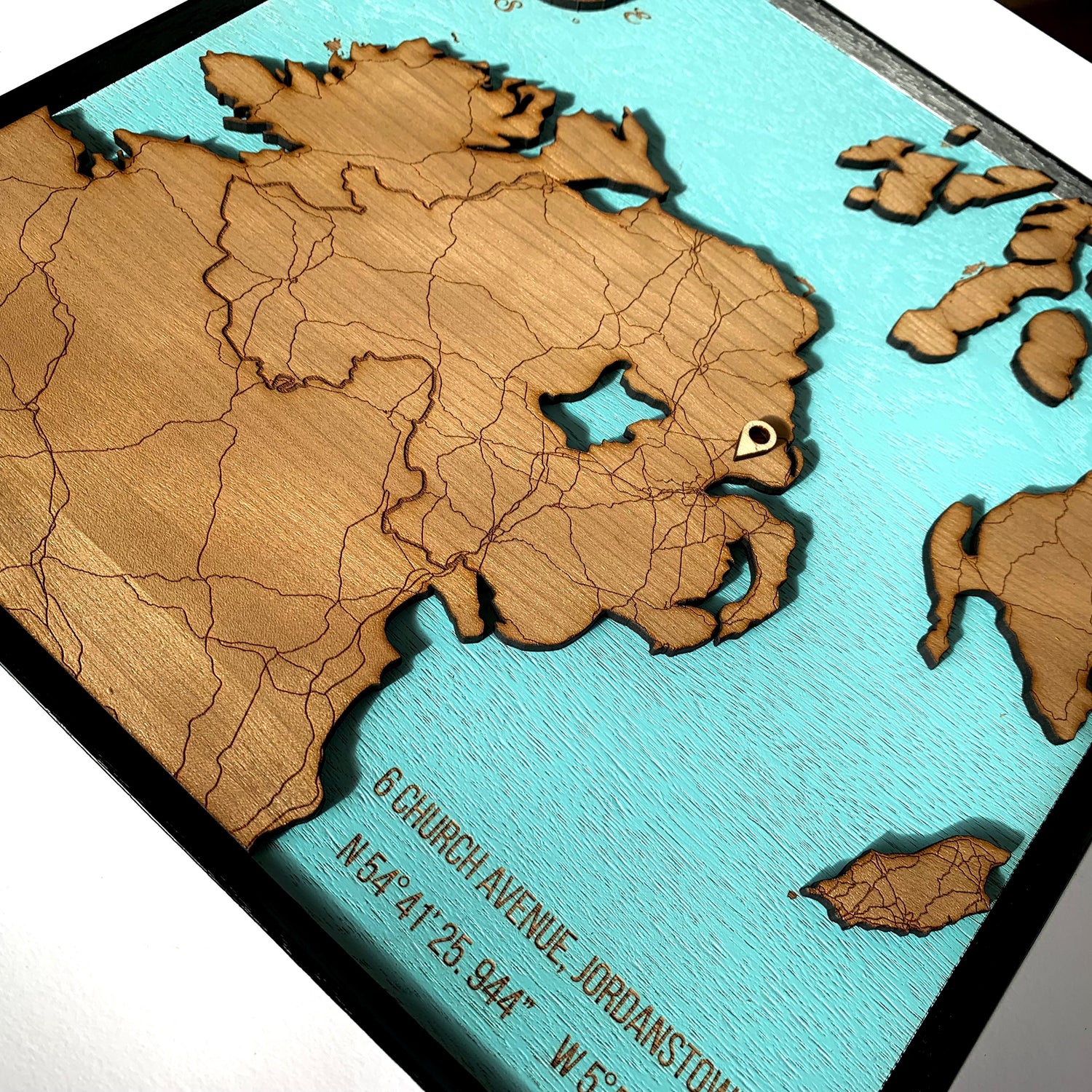 We specialise in creating unique gifts using a mix of graphic design, cartography and laser cutting. Our new shop is located Based on Belmont Road in Belfast, Northern Ireland. Alongside our own Woodcut Maps you will find a selection of personalised gifts, wedding decor and many gift from other local artists and makers.